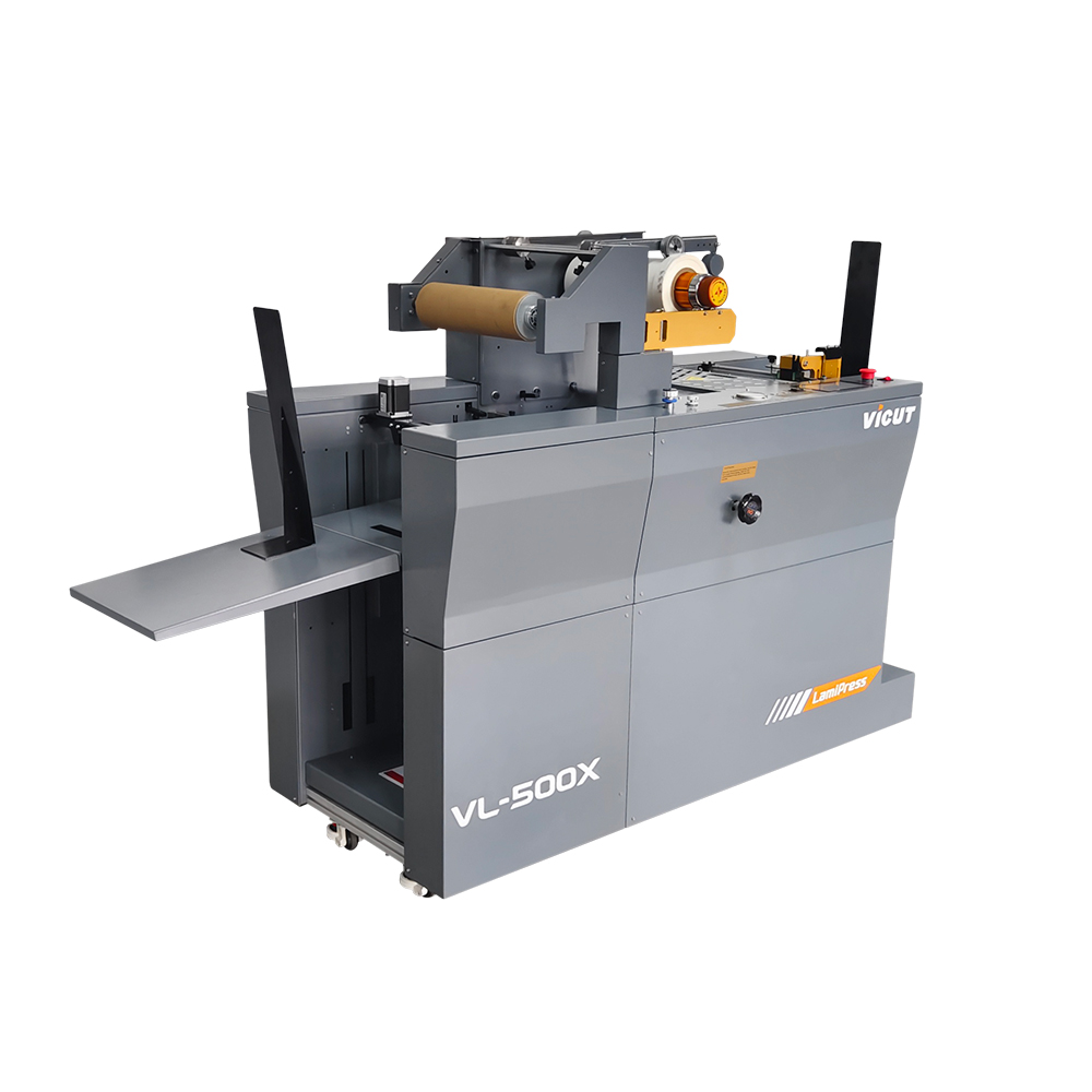 VICUT multifunctional digital lamination system VL-500X, feeding paper by automatic air suction, the automatic lifting and feeding platform can accommodate media sheets with a height of 45cm, equals to 4000pcs sheets of copy paper (250gsm). The self-developed software design has a more user-friendly operation interface, automatic identification of paper length without setting, which improves the working efficiency of the whole machine, also guarantee the accuracy of lap and pull-off, so that the whole system runs more stably, and the productivity is greatly improved.