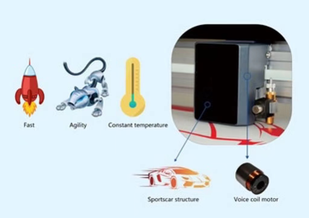 Advanced algorithm and quality hardware allow for obvious elimination of distorted, rounded or lifted corners. Advanced algorithm of motion controller, optimized tool paths, servo motor on XY axis, voice coil motor on Z axis and quality precision driving system, all of these elements make the machine moving faster and processing with more efficiency.