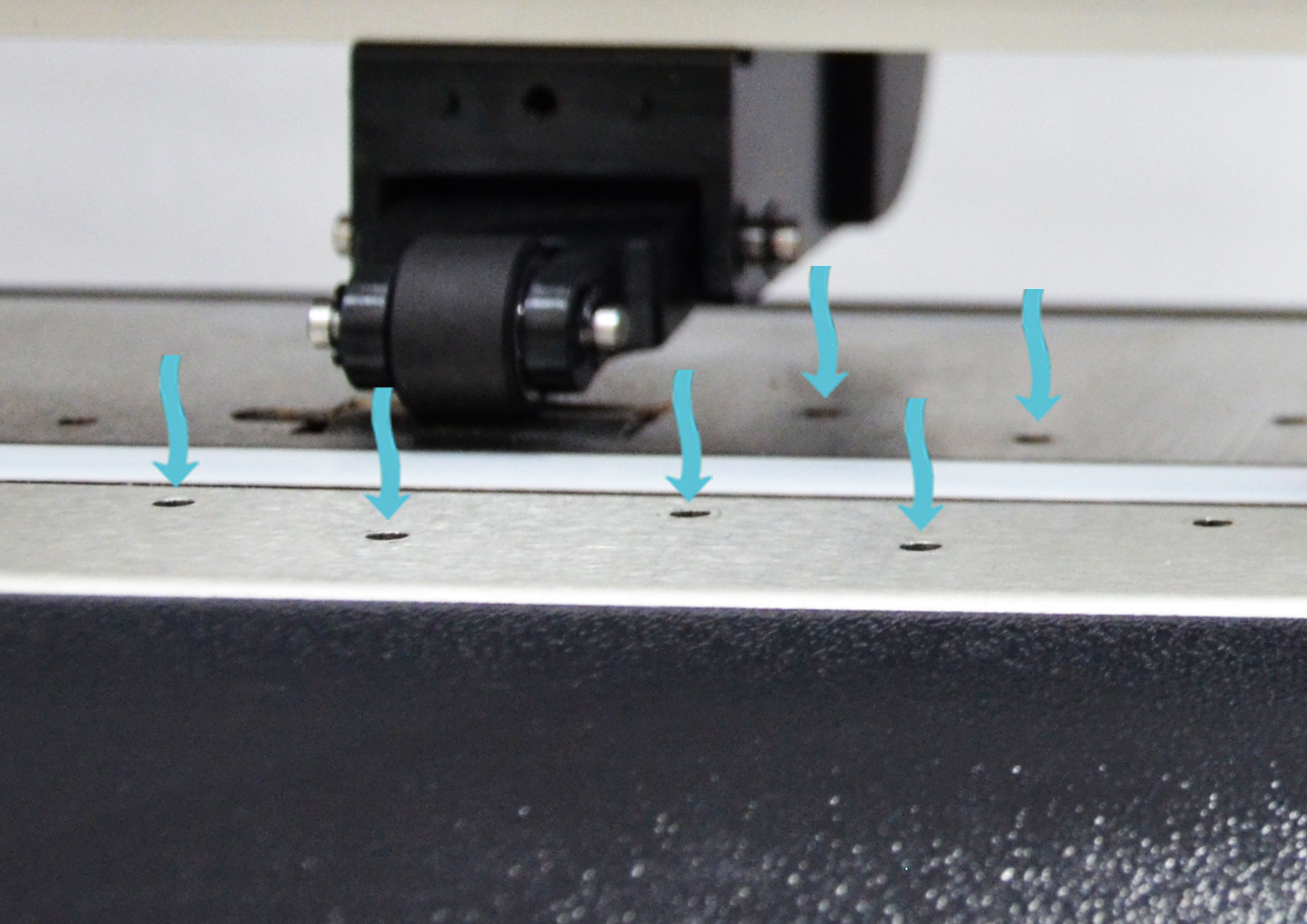 Dense air inlets & strong air flow to hold down the media flatly and tightly against the table top so that the tool carriage can perform fast, accurate cutting / plotting.